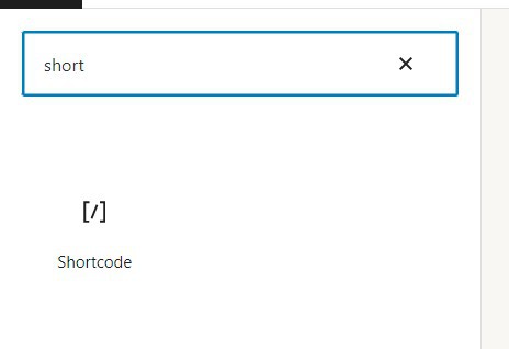 - Now a block inserter should start. Find your shortcode block by typing "shortcode," then choose the block.